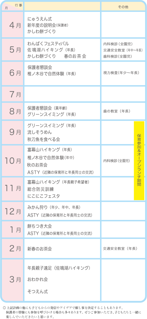1年間の主な行事